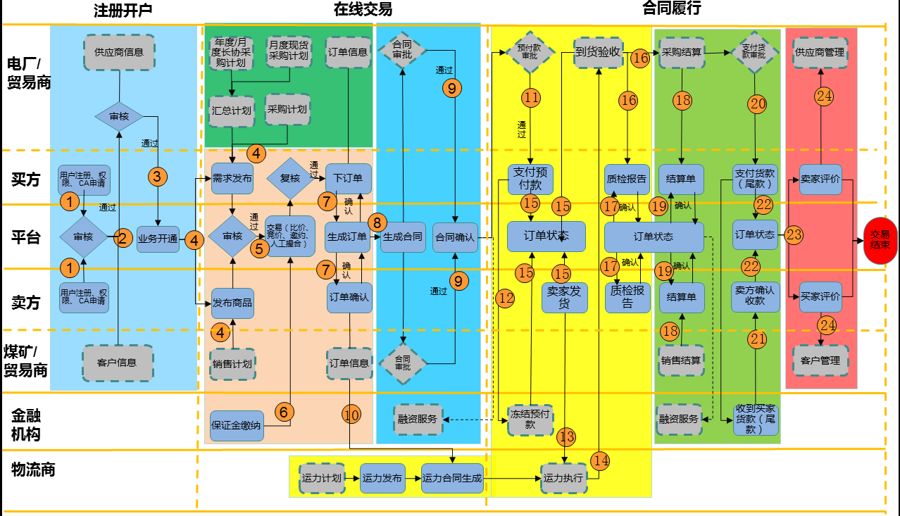 煤炭贸易平台是一个面向互联网应用的贸易平台,通过整合煤炭生产单位、煤炭贸易单位、煤炭运输单位、煤炭使用单位的供运销需求,使各企业协同发展。为发电集团、煤矿、煤炭贸易企业提供阳光采购、物流服务、供应链管理、保证金管理、银企直联、供应链金融等多项服务。