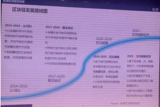 未来十年整个区块链革命的路线图会是什么样?可以把2014到2016年成为区块链从零到一的元年,2017年到2020年基于金融企业,开始在有限的业务中采用区块链作为概念验证,其他的行业,比如说交通、物流、能源开使用区块链,会出现平台型区块链独角兽出现。