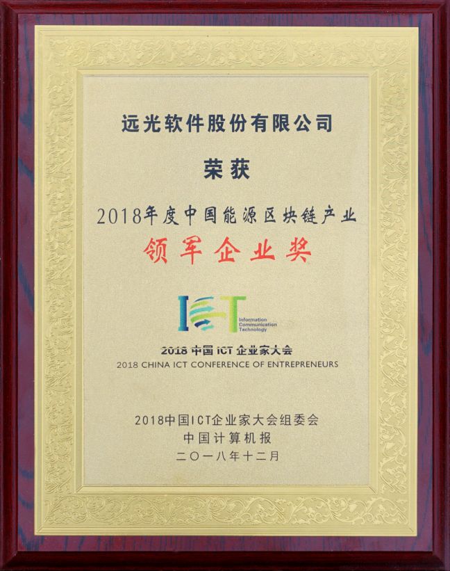 日前,由ICT企业家大会组委会主办,赛迪传媒、中国计算机报承办的“2018中国ICT企业家大会”在北京成功举办。远光软件凭借在能源区块链领域的卓越表现,获大会授予“2018中国能源区块链产业领军企业奖”。