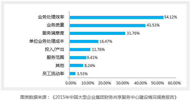 《管理会计转型始于财务共享服务--2015年中国大型企业集团财务共享服务中心建设情况调查报告》数据显示,从企业对财务共享服务中心的评价标准来看,企业更注重财务共享服务中心的运营水平,即向企业提供服务的效率、质量及客户满意度。