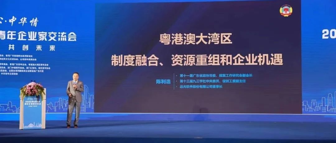 5月18日,2023粤港澳台青年企业家交流会在广州开幕。远光软件公司董事长陈利浩作为两位主讲嘉宾之一,以《粤港澳大湾区制度融合、资源重组和企业机遇》为主题作了主旨演讲。