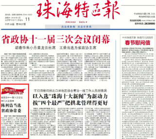 昨日下午,省政协十一届三次会议举行大会选举,增补王大平、刘海、池志雄、李心(女)、李焕春(女)、吴仰伟、张渝、陈利浩、陈国祥、周毅州、郑雁雄、程学源等12人为政协第十一届广东省委员会常务委员。会议同意陶...