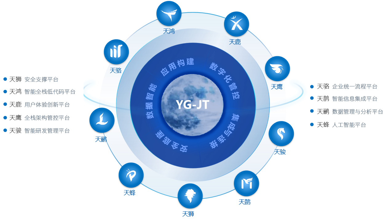 自研九天智能引擎JApsaras和智能编程语言JLuna,通过提供全栈自主创新技术路线的微服务框架、低代码框架、系统治理框架和安全框架等核心组件,为企业构建自主可靠的安全技术底座。