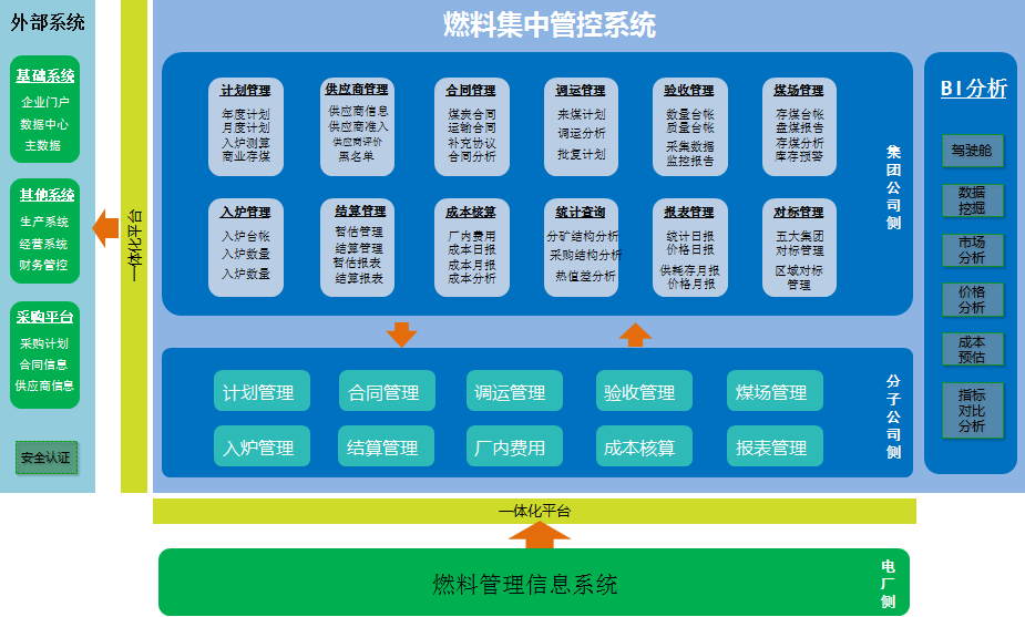 通过三级贯通模式,燃料数据从电厂设备直接获取,数据不落地,保证数据原始性,真实性、及时性。