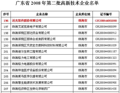 日前,广东省科技厅、财政厅、国税局、地税局四部门联合发文,公布广东省2008年第二批高新技术企业名单,远光软件股份有限公司等564家企业入选。