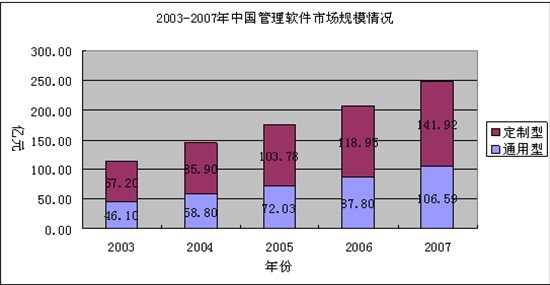 图 2 2003-2007中国管理软件市场规模(数据来源:CCW Research,2008年3月)