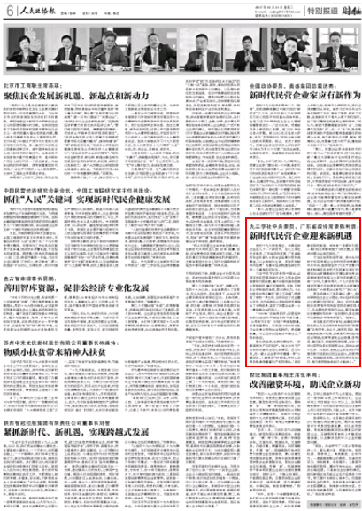 10月31日,《人民政协报》财经周刊对本次沙龙座谈进行了专题报道,并刊登了《新时代民营企业迎来新机遇》和现场侧记《站着发言的民营企业家》等文章,以下小编为您分享。