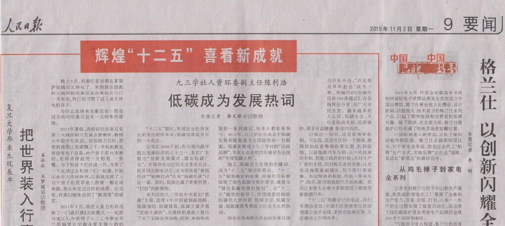 《人民日报》陈利浩 :低碳成为发展热词