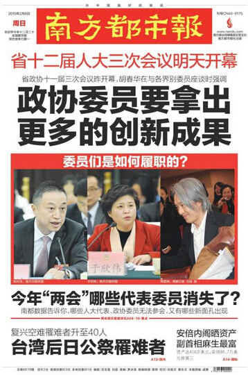 南方都市报:头条:政协委员要拿出更多的创新成果