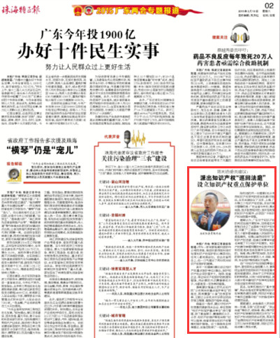 《珠海特区报》陈利浩建议:派出知识产权“巡回法庭” 设立知识产权重点保护单位