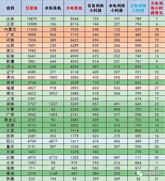 综合各省火电装机排名以及火电利用小时排名情况,作出以下判断: