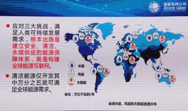 应对三大挑战,满足人类可持续发展需求,根本出路是建立安全、清洁、永续供应的能源保障体系,就是构建全球能源互联网。