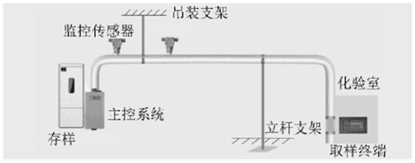 样品自动传输系统是一套实现样品从采样到化验全过程无缝衔接的专业系统, 以样品传输过程“无人值守、人样分离” 为目标, 率先引入先进的“即化即取” 管理理念, 全面采用物联网、自动化、在线监测等技术, 为样品作业过程自动化处理提供了可靠的技术支撑, 为物联网技术在我国传统火电工业开创了全新的应用, 对燃料智能化管理带来全新的变革。样品自动传输系统如图2所示。