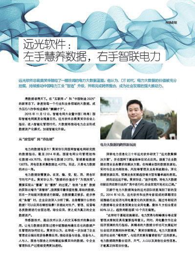 2015年11月12日,智能电网大会暨中国(珠海)国际智能电网展览会隆重召开。远光软件总裁黄笑华在会上指出:进入智能化管理时代,大数据将推动电力企业形成数据资产化模式,加速智能化升级。