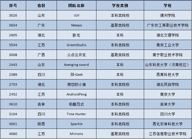 以下为选择远光软件赛题并晋级决赛的参赛队伍名单: