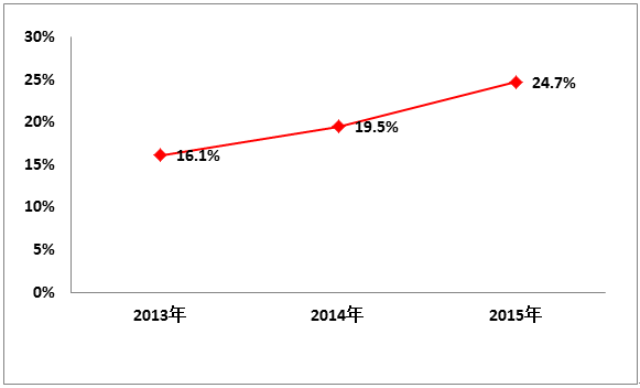 图表:2013-2015年主要IT软件移动化投资占比趋势图