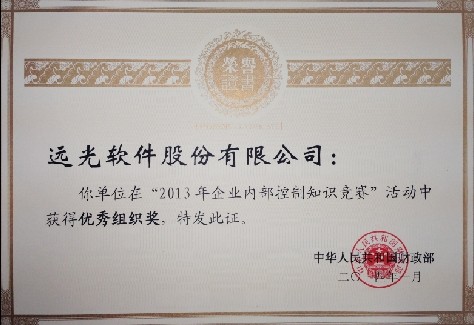 日前,由财政部会计司、中国注册会计师协会、国资委财务监督与考核评价局、证监会会计部、中国会计报联合举办的2013年企业内部控制知识竞赛圆满落下帷幕。该竞赛吸引了210万人参加,在全社会掀起了内控知识学习热潮,有力地促进了企业内部控制规范体系的贯彻实施。财政部为活动支持单位远光软件颁发了“优秀组织奖”,褒奖其为保障活动顺利开展、推动内部控制知识普及所做的努力,勉励其再接再厉推动内部控制和风险管理的全面推广,护航中国企业迈向一流管理。