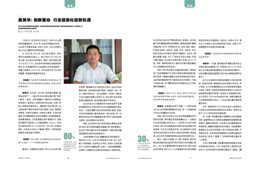 黄笑华:这里面存在误读。电力企业业务不断在变革,管理需求也不断在发生变化,由此引发的服务创新、业务创新也是不断的、持续的。所以,我说"创新引领未来",远光发展的"天花板"将取决于远光创新的想象力和执行力。我们客户的业务创新催生管理变革,驱动信息化需求不断变化。
