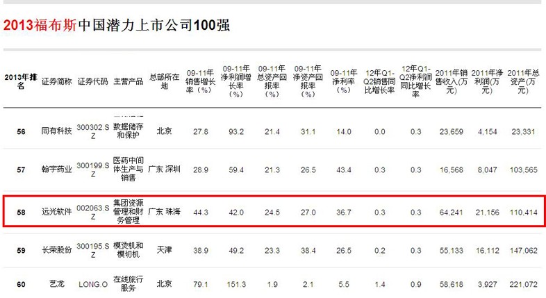 厚积薄发 远光软件入选福布斯中国潜力上市百强