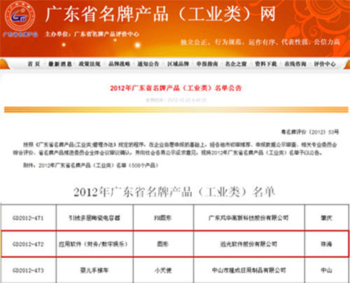 日前,广东省名牌产品(工业类)网公布了2012年广东省名牌产品(工业类)名单。稳居国内企业管理软件第一品牌阵营的远光软件继2009年成功入选后,再次被授予“广东省名牌产品”称号。