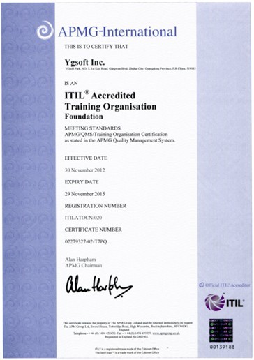 日前,远光软件喜获ITIL® ATO资质证书(ITIL® is a registered trade of the Cabinet Office),成为APMG授权的ITIL(Information Technology Infrastructure Library)认证培训企业。ITIL能为企业的IT服务管理实践提供客观、严谨、可量化的标准和规范。获得该证,是远光软件提升IT从业人员综合能力,确保IT管理为业务运作提供更好支持,增强服务管理竞争力不可或缺的重要一环。