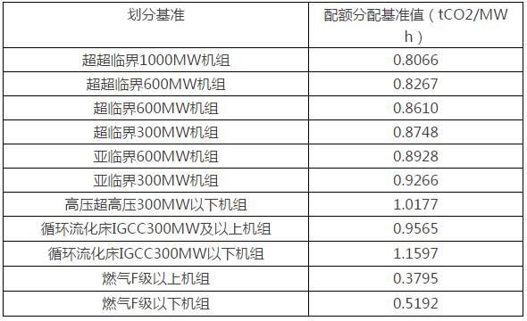 全国碳交易市场碳配额分配试算工作培训会公开了全国碳交易市场的配额分配方案中电力、水泥和电解铝行业的配额分配方案的讨论稿,配额分配的总体思路为基准线法+预分配的思路。其中电力根据压力、机组容量和燃料类型划分了11个基准线。下面详细介绍一下各行业的配额详细分配方法: