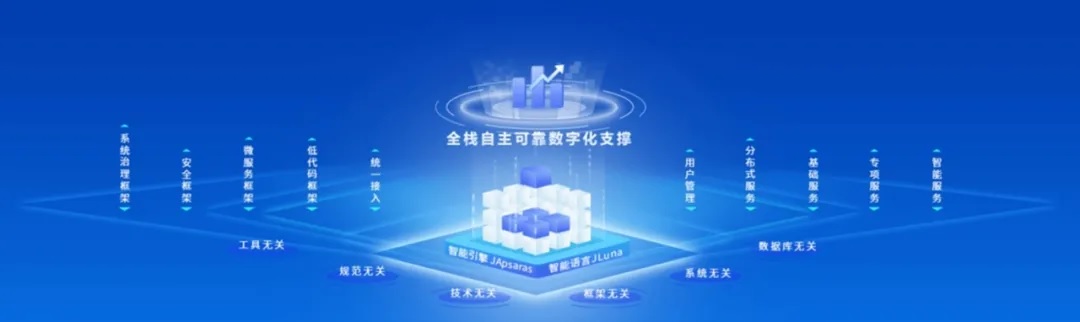 采用自主可信创新技术,自研智能引擎和智能语言,其微服务框架、低代码框架、系统治理框架和安全框架等核心组件均采用全栈自主创新技术路线,可提供自主可靠的安全技术底座,为企业数字化建设安全保驾护航。