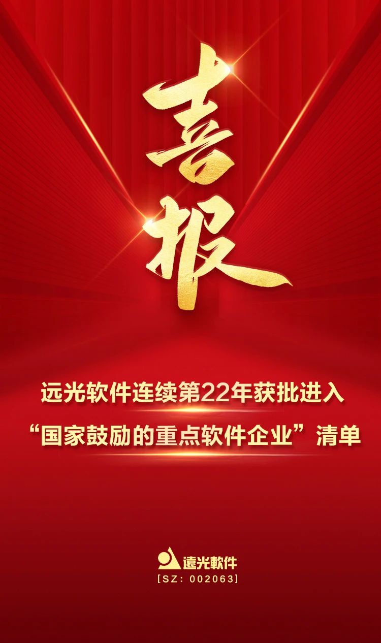 喜报!远光软件连续第22年获批进入“国家鼓励的重点软件企业”清单