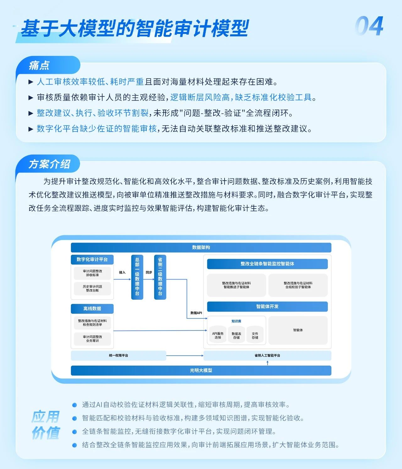 ✅【基于大模型的智能审计模型】通过AI自动校验佐证材料逻辑关联性,缩短审核周期,提高审核效率。