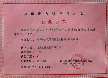 日前,山东电力科学技术奖励委员会在济南隆重召开。远光软件为山东电力集团公司量身打造的“财务集约化管理体系支撑平台研究应用”荣获山东电力科学技术进步一等奖。此前,项目曾获中国电力企业联合会授予“电力行业‘十一五’信息化十大成果”奖。喜讯频传彰显了远光团队深厚的行业经验、独特的创新智慧以及过硬的技术实力和研发能力。这一成果的获得也得益于山东电力公司将集约化的部署工作作为科学发展的强力引擎和动力源。