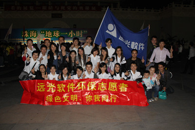 晚上8时,远光软件的旗帜高高飘扬在珠海九州博物馆‘地球一小时’活动现场。这是远光软件第二次参与此活动。远光软件活动负责人表示,相较去年,参与人数翻倍增长,部分远光家属也加入了“远光环保志愿者”行列。大家对‘地球一小时’活动的认知、低碳环保有了更深刻的理解。活动现场,数百名环保人士齐聚一堂,为熄灯倒数,观赏不插电音乐、光影涂鸦、参加环保游戏,发起庄严的“环保微承诺”。