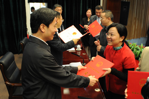 12月5日,在“珠海市2011年科技奖励暨加快发展战略性新兴产业大会”上,远光软件高级副总裁朱安从珠海市市委书记、市人大常委会主任甘霖手中接过“科学技术进步奖一等奖”的证书。