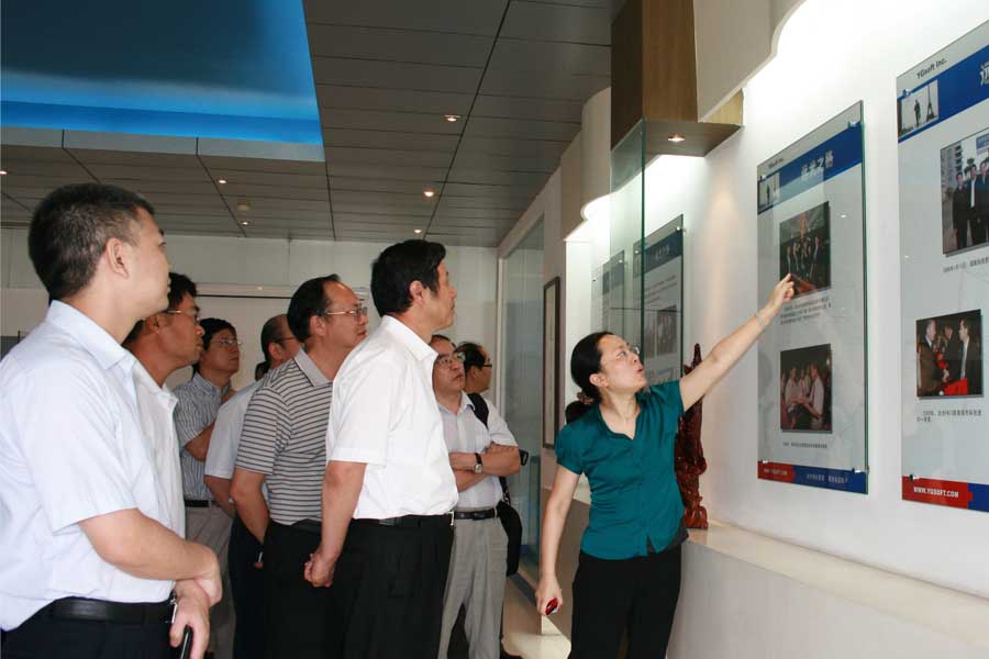 在远光软件展厅的参观过程中,朱工介绍远光的发展历程、陈工的获奖历史,市场份额、产品创新和人员规模等基本情况。其中,许副局长还了解了“远大光明”墨宝的由来故事,并不时与朱工进行交流和探讨。远光软件在31个地区建立的专属电力企业的服务团队则引来了随行领导的极大兴趣,并对远光服务电力客户的独特模式和团队平均26岁年轻化带来的企业活力表示认可。