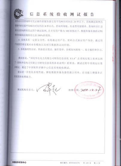2010年12月27日,国电系项目传来了一个令人振奋的喜讯----国电华北财务管控项目顺利通过国家权威检测机构中国软件评测中心的验收评测。