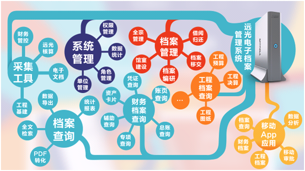 (远光电子档案管理系统功能示意图)