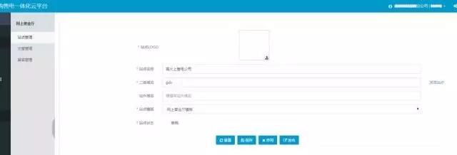 2、输入站点名称、二级域名、选择站点模板,点击发布,就可以使用网上营业厅了。