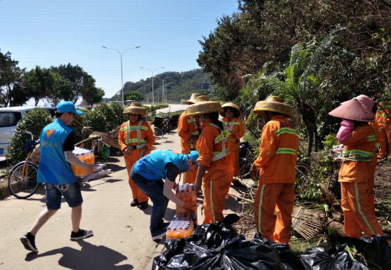 ▲ 远光志愿者为在一线工作的环卫工人提供饮用水