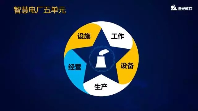 在演讲中,杨亚泽对“远光智慧电厂”的管理思路和体系进行了阐述。他将智慧电厂可分为了五个单元,即:设施、经营、生产、设备和工作。具体来说,要建设智慧电厂,可以通过智能网络、智能门禁、智能定位、智能安全、智能环保等,让电厂基础设施“智能”起来;通过智能商旅、智能智库、智能学习、智能会议、智能抄报、智能表计等,让电厂人员的操作“智能”起来;通过智能数字化、装置运行智库、专家经验智库、设备运行监控、设备故障预判、设备自主优化等,让电厂设备运行“智能”起来;通过智能燃料、智能巡检、智能物料、智能安全等,让电厂生产过程“智慧”起来;通过市场预判、电量预判、利润预判、经营预判、经营后评价优化、市场后评价优化、调度后评价优化等方式,让电厂经营管控“智慧”起来。