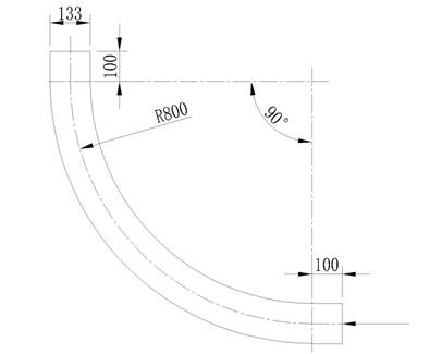 根据弯管流场二维图绘制三维图,即以管道内径为直径的实体弯管作为空气的流场模型。