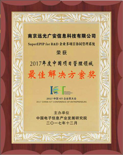 近日,由工业和信息化部指导、中国电子信息产业发展研究院主办的“2017ICT企业家大会”在北京香格里拉酒店顺利召开。大会吸引了以色列、乌拉圭、肯尼亚等国家驻华大使,以及江西、山东等省市领导和国内外知名IT企业领导出席。会上,远光软件下属公司南京远光广安信息科技有限公司创新研发的“SuperEPIP for R&D企业多项目协同管理系统”凭借强大的可配置能力,易用性、全面性及灵活性,荣获“最佳解决方案”奖。