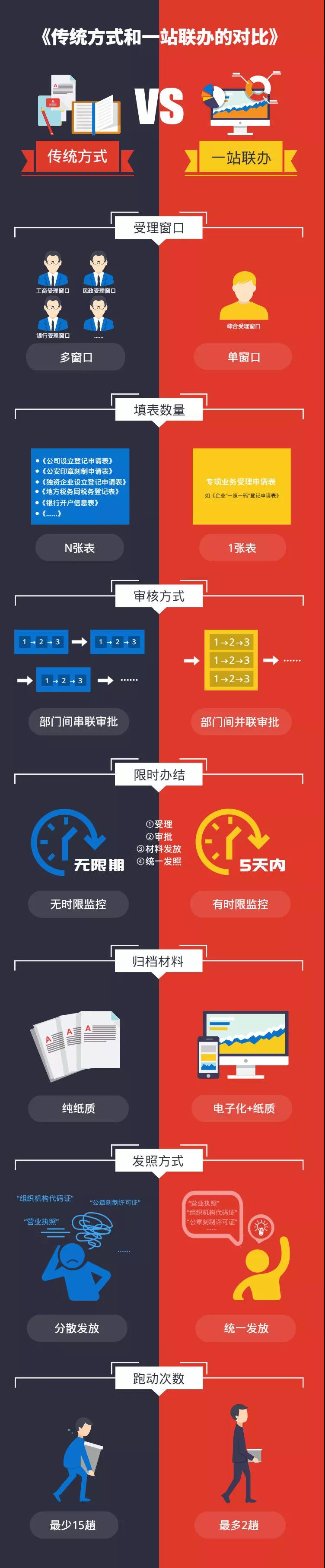 “一站联办”服务平台与传统方式相比更加便捷,具体体现在多个方面:受理窗口由多窗口转为单个综合受理窗口;填表数量由之前多张表格填写到只需一张专项业务受理申请表;审核方式也更为灵活,有时限监控的办理保证办证时效;归档资料除了纸质还有电子化材料归档,受理后统一发放证件,大大减少跑动次数。