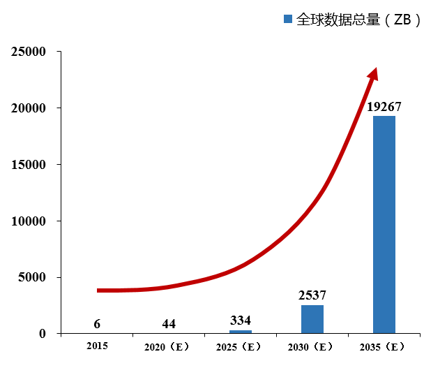 图1新摩尔定律主导下2015-2035年全球数据总量增长态势