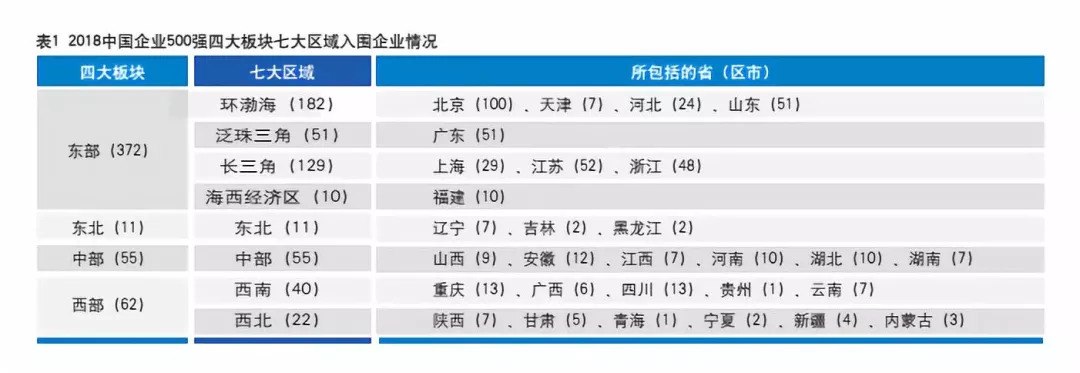中国企业500强第一梯队、第二梯队入围企业差距进一步缩小(区域入围企业数量高居首位的北京属于第一梯队,区域入围企业数量少于北京且在40家以上的江苏、山东、广东、浙江四省属于第二梯队);但四大板块与七大区域的不均衡程度进一步上升,东部地区企业连续增加,长三角地区成为中国企业500强的重要成长摇篮。