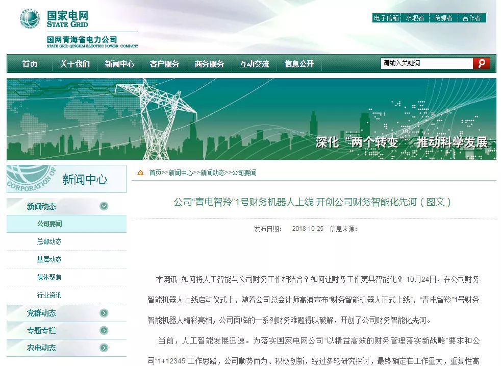 当前,人工智能发展迅速。为落实国家电网公司“以精益高效的财务管理落实新战略”要求和公司“1+12345”工作思路,公司顺势而为、积极创新,经过多轮研究探讨,最终确定在工作量大,重复性高和标准统一的购电费结算业务应用财务机器人。2017年12月,形成业务方案。经过近一年的探索研究,目前已具备上线投运条件。近日,国网公司在听取专题汇报后,也高度肯定和认可了公司此项工作,认为青海财务智能机器人解决了智能效率、效益的问题,符合国网公司智慧财务的建设思路,提供了有益的经验。