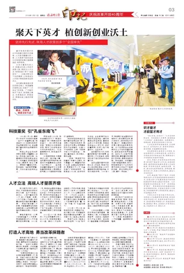 翻开珠海改革开放40年波澜壮阔的历史画卷,人才是浓墨重彩的一笔,人才源源不断的创造力令珠海的发展之路高潮迭起、有声有色。