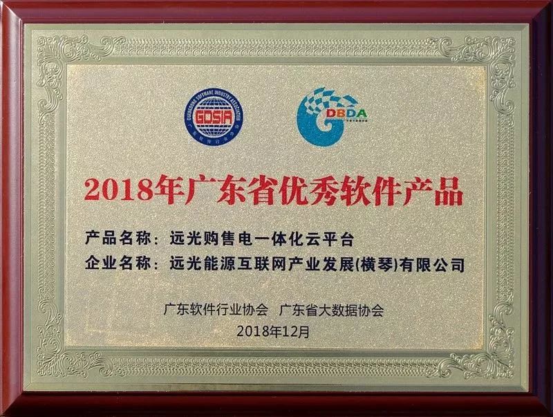 远光购售电一体化云平台再次荣获“2018年广东省优秀软件产品”,同时列入广东软件行业协会优秀软件产品目录,优先向粤港澳地区的政府、企业采购推荐,助力粤港澳大湾区信息化建设。这是“远光购售电一体化云平台”连续第二次获此殊荣,也是售电信息化产品第二次赢得该荣誉。