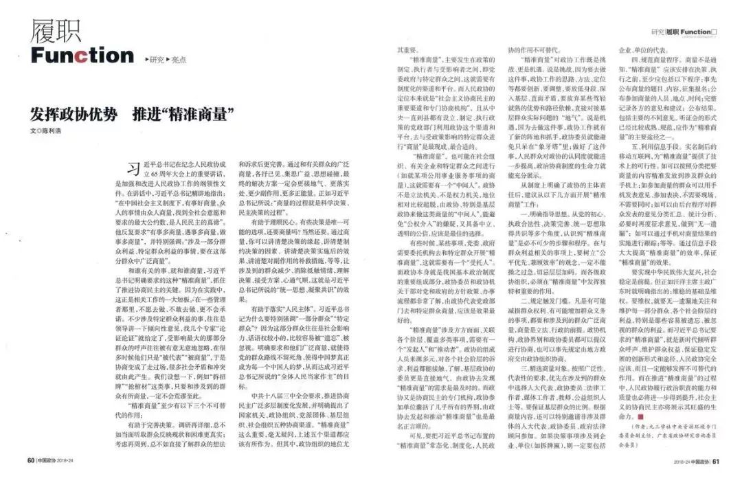 拆公司招牌,需不需要跟企业商量?煤改气、改电,需不需要跟燃煤取暖的村民商量?禁止电动自行车,需不需要跟广大车主、特别是快递小哥商量?在个别地方官员心中,如果这样去商量、无异“与虎谋皮”。但是,习近平总书记在“纪念人民政协成立65周年大会”上明确要求:“涉及一部分群众利益、特定群众利益的事情,要在这部分群众中广泛商量;涉及基层群众利益的事情,要在基层群众中广泛商量。”。在全国政协礼堂现场,远光软件董事长陈利浩被这一前所未有的要求“震到”。他认为:这种“精准商量”,对那些经常被有意无意遗忘、忽视和损害的基层群众,是制度化的“雪中送炭”。如能真正落地,政府决策的科学性、合理性就能大大提高,社会稳定也才能从根本上得到保证。他的学习体会,在被广东省政协“加强和改进人民政协工作学习座谈会”采用后,又刊登在最新一期的《中国政协》(全国政协主办的国家级月刊)。