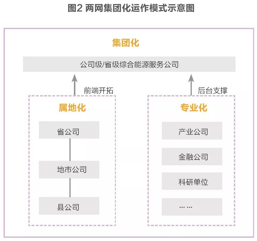 集团化、属地化、专业化成为两网拓展综合能源服务市场的“三化”原则。省市县公司具有属地化优势,可以充分利用好大客户经理直接接触用户机会,掌握第一手的客户需求信息,有效拓展营销渠道。产业单位、金融单位、科研单位和集体企业等则延续专业化发展道路。通过专业化和属地化的有效协同,可加强各单位间的优势互补和资源统筹,从而实现集团整体业务的良性运作和有序发展,实现集团利益的最大化。