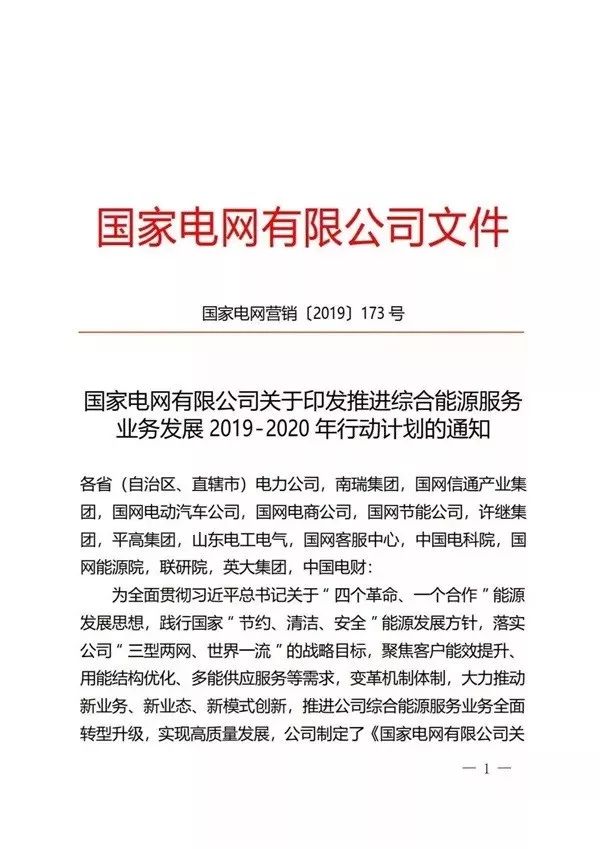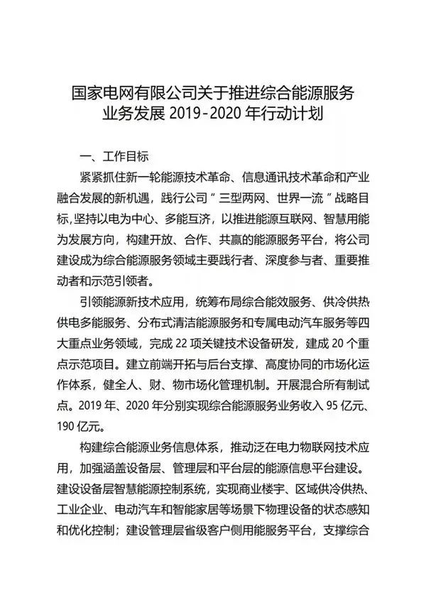 国家电网综合能源服务业务发展2019-2020行动计划发布,2020年综合能源服务业务营收要达到190亿