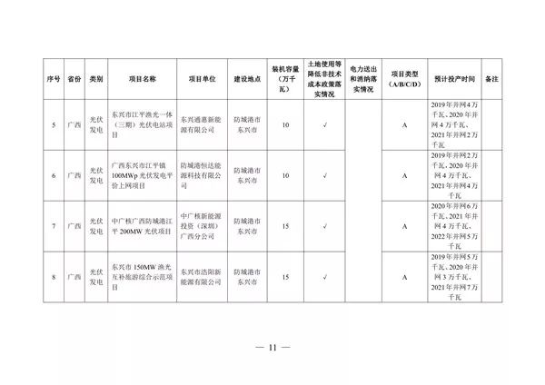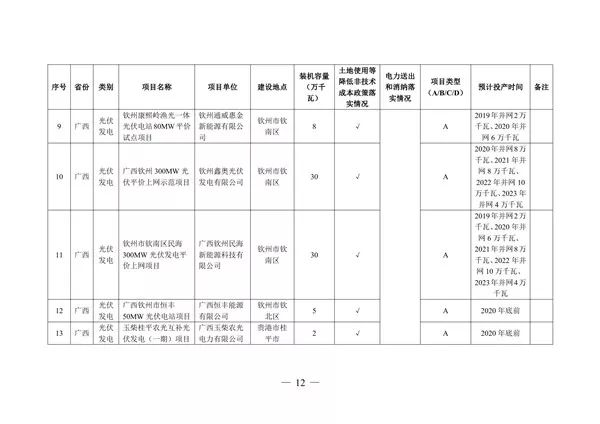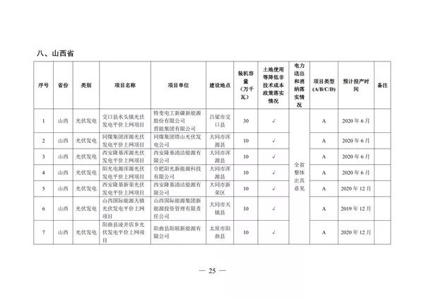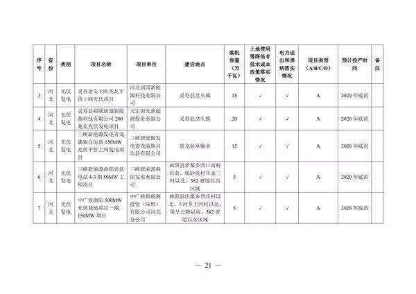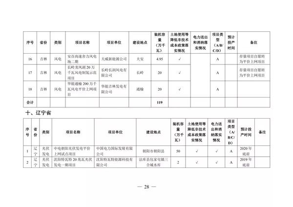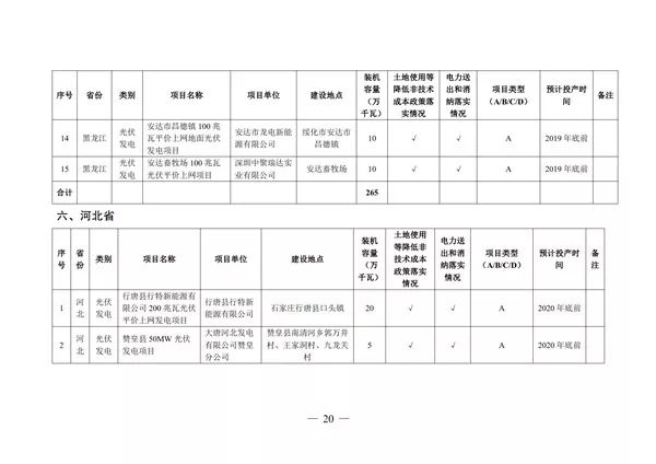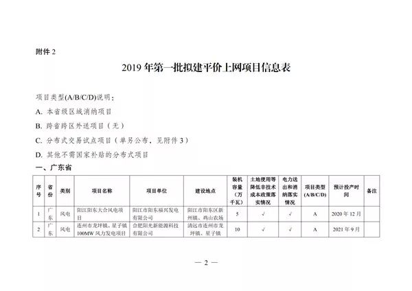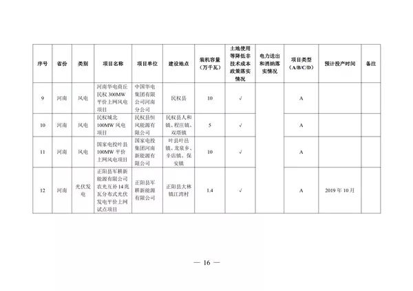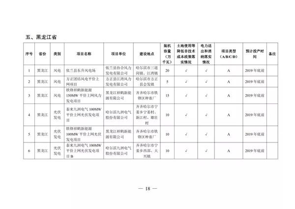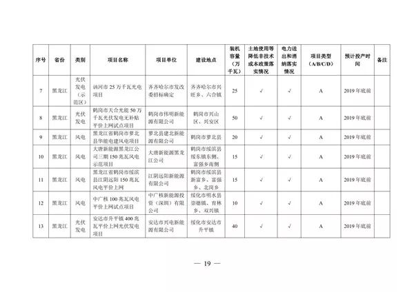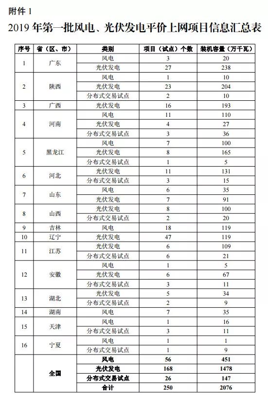 1.2019年第一批风电、光伏发电平价上网项目信息汇总表